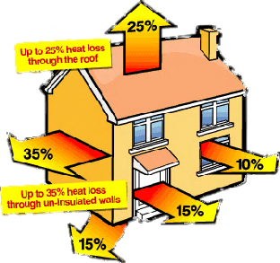 Heat loss due to no or insufficient insulation in your home can account for as much as 25% lose of heat.
